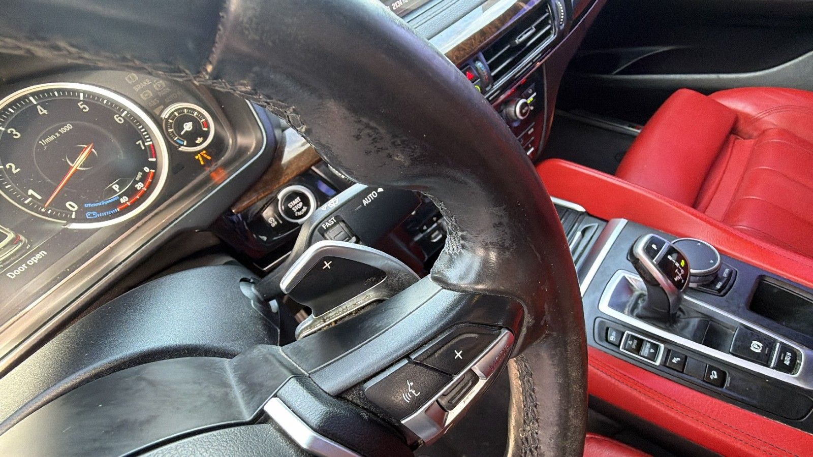 Gearshifter material: Leather and metal-look gear shifter material