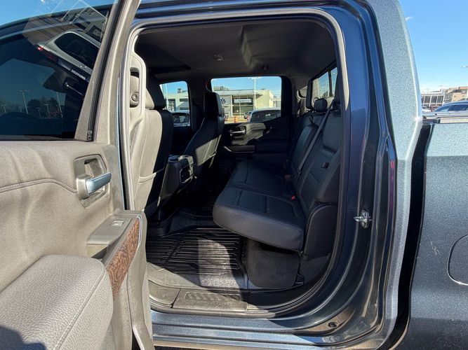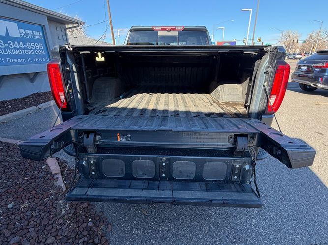 Experience the perfect blend of luxury and performance with the 2020 GMC Sierra 1500 Denali. This Crew Cab pickup, dressed in a striking Satin Steel Metallic finish, is powered by a robust EcoTec3 5.3L V8 engine delivering an impressive 355 horsepower and paired with a smooth 10-speed shiftable automatic transmission. With its reliable 4WD drivetrain, this truck is ready to tackle any terrain or weather condition with ease.